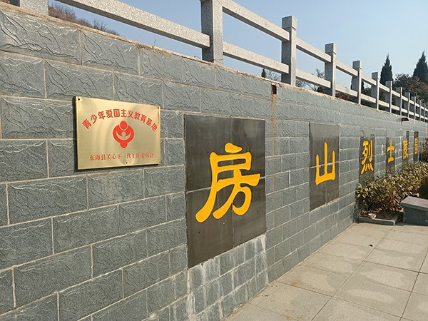 房山革命烈士陵园,坐落于风景秀丽的房山南麓,2020年被东海县关工委命名为东海县青少年爱国主义教育基地。陵园内有英雄纪念碑一座,88个石椁位墓,这里长眠着为共和国解放事业而英勇牺牲的革命烈士88人,其中驼峰乡5人、张湾乡3人,石湖乡3人,平明镇14人,房山镇53人,白塔埠镇7人,牛山街道1人,石榴街道1人。