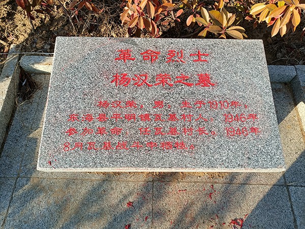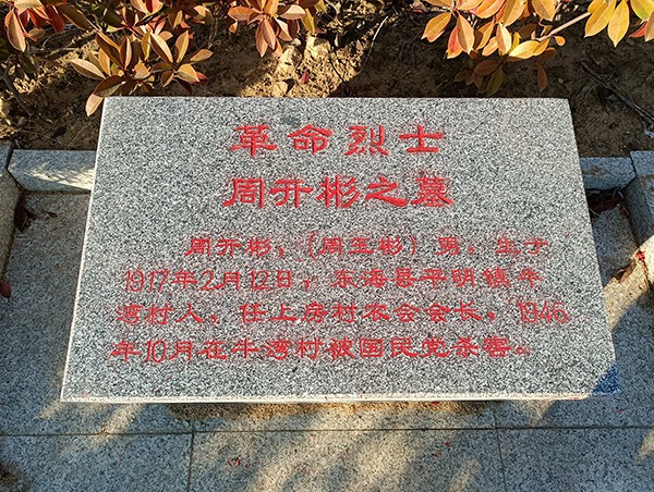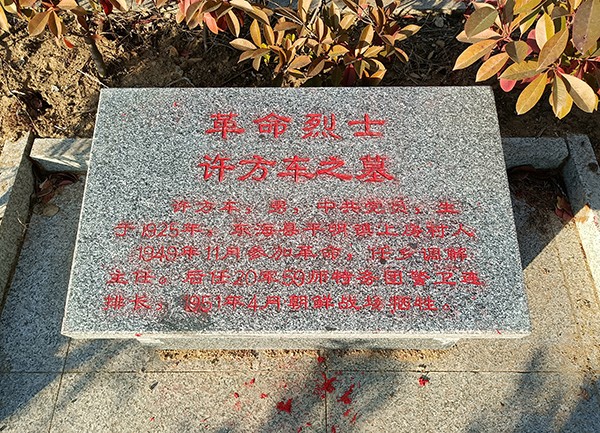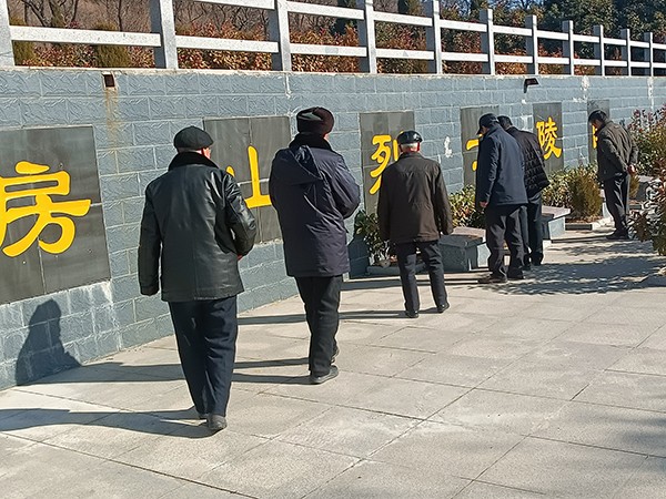 房山烈士陵园原址位于山后村钓鱼台,2015年房山镇党委政府斥巨资,从钓鱼台搬迀至此。每年的清明节、烈士纪念日、国家公祭日、春节等节日,都有数万人到烈士陵园来瞻仰。十几年来,由于风吹日晒,雨淋剥蚀,纪念碑碑文模糊不清,为了保证社会各界来瞻仰烈士陵园时,能看清楚墓碑上的碑文,了解为共和国牺牲烈士们的英雄事迹,房山镇关工委会同房山镇老干部党支部、老科协,在春节来临之际,江苏省学雷锋优秀志愿者戚号生自费购买油漆、劳动工具,会同房山镇关工委志愿者滕士华、王文楼、唐建芹、刘宜山、韦友贤、董志阳等一起,冒着严寒,耗时一周,把烈士陵园烈墓碑及88块英雄石椁文字,用红漆重新描红,使字迹清晰鲜艳,展现在世人面前。