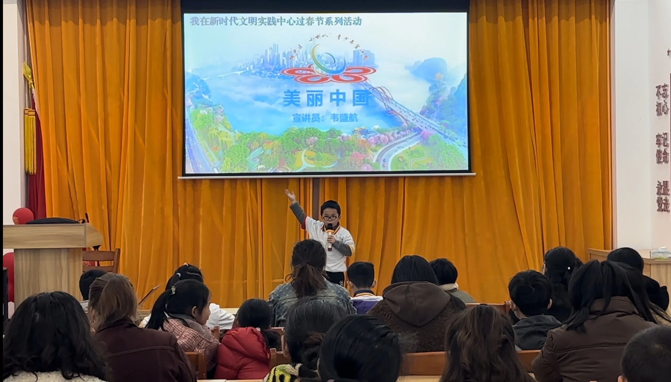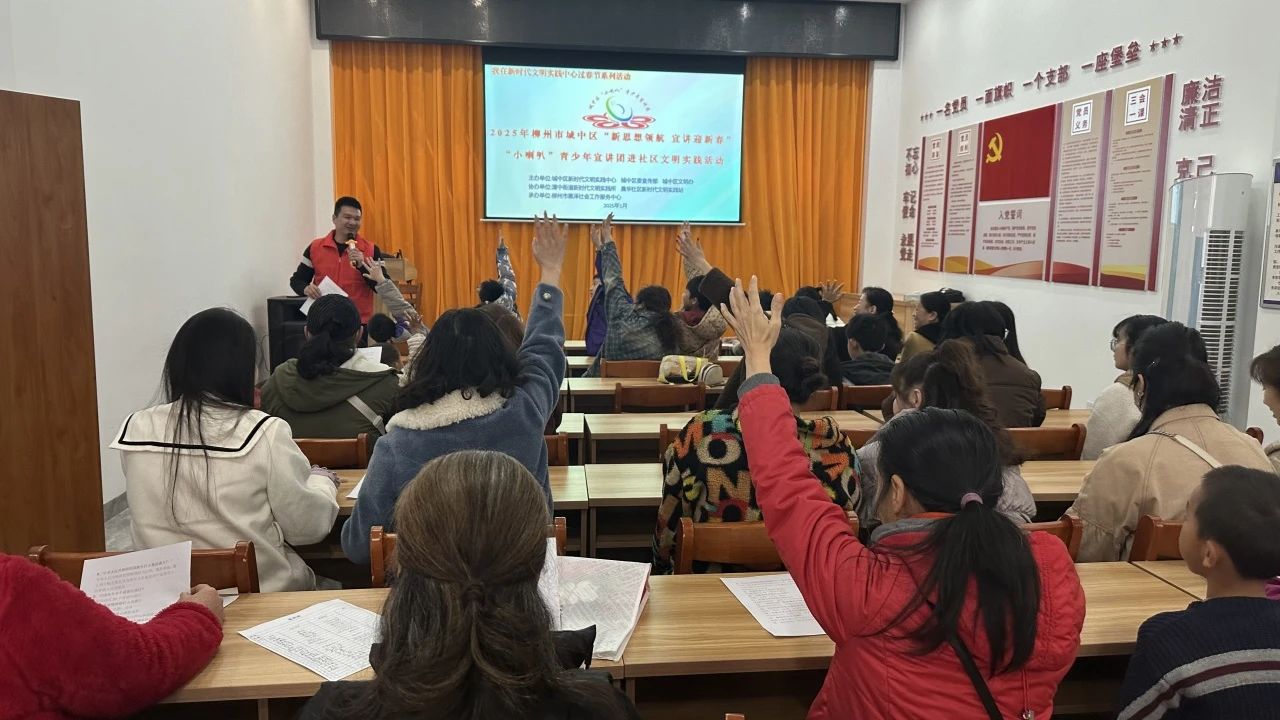 1月15日,广西壮族自治区柳州市城中区教育局关工委“小喇叭”青少年宣讲团在晨华社区开展“新思想领航 宣讲迎新春”进社区文明实践宣讲活动,宣讲内容涵盖爱国、强军、环保、文化传承等多个领域,“小喇叭”们激情澎湃的宣讲,赢得现场观众的阵阵掌声。