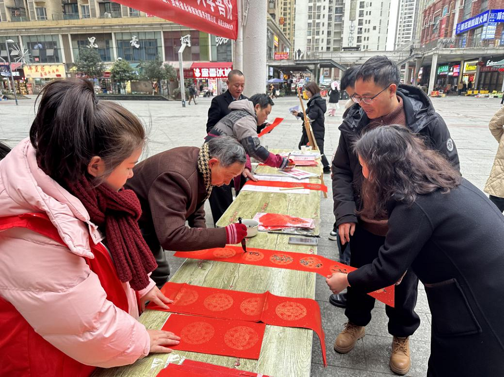 在新春佳节即将来临之际,为弘扬中华传统文化,营造喜庆祥和的节日氛围,1月19日,兰花都街道广场社区、花绘社区、兰花社区关工委联合宏立城物业邀请书之堂书法班老师,共同开展“墨香四溢迎新春 社区送福暖人心”志愿服务活动,50余位居民热情参与。