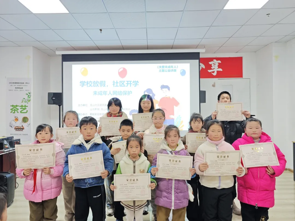 在寒假来临之际,为保障未成年人健康成长,营造安全、绿色的环境,1月19日,贵阳市南明区后巢乡关工委联合龙山社区新时代文明实践站开展了“未成年人网络保护、未成年人普法”两场讲座,共计80余名未成年人参与。