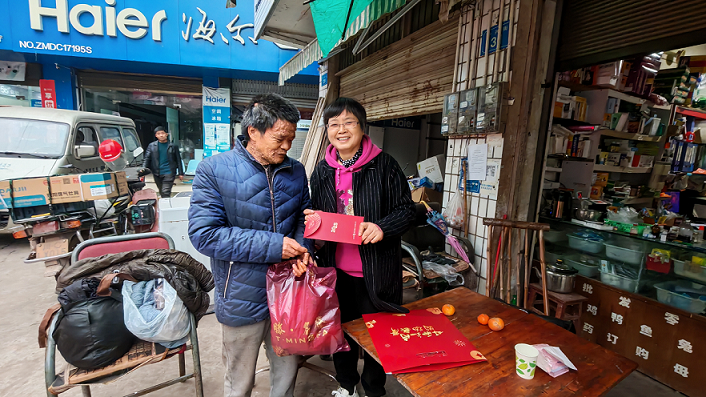 “提前祝你新春快乐!放寒假了,平时一个人在家要注意用电用气安全,取暖设备用完及时关闭电源,外出多穿一点,晚上锁好门窗注意安全。”1月23日,四川省自贡市富顺县关工委副主任、县关心下一代公益协会会长张利到古佛镇开展“新春送温暖”走访慰问活动,走访3名困境青少年家庭,共送去慰问金2500元。