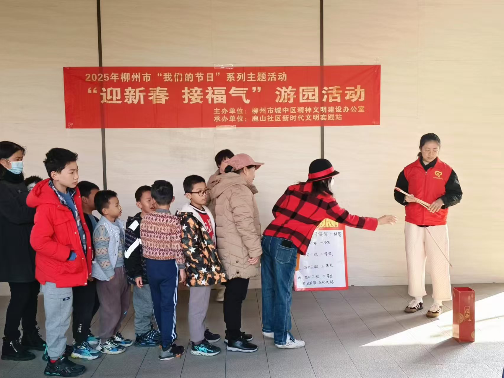 祥蛇起舞,福满人间。2025年春节将至,为传承弘扬中华优秀传统文化,营造欢乐祥和氛围,提升民众获得感、幸福感。1月23日,广西柳州市城中区鹿山社区、关工小组联合辖区派出所、小区物业等单位,在辖区联发天成、联发天御、金色世纪、鹿山花苑等多个小区开展“迎新春 接福气”游园活动,让辖区青少年和居民在家门口就能感受到浓郁的年味。