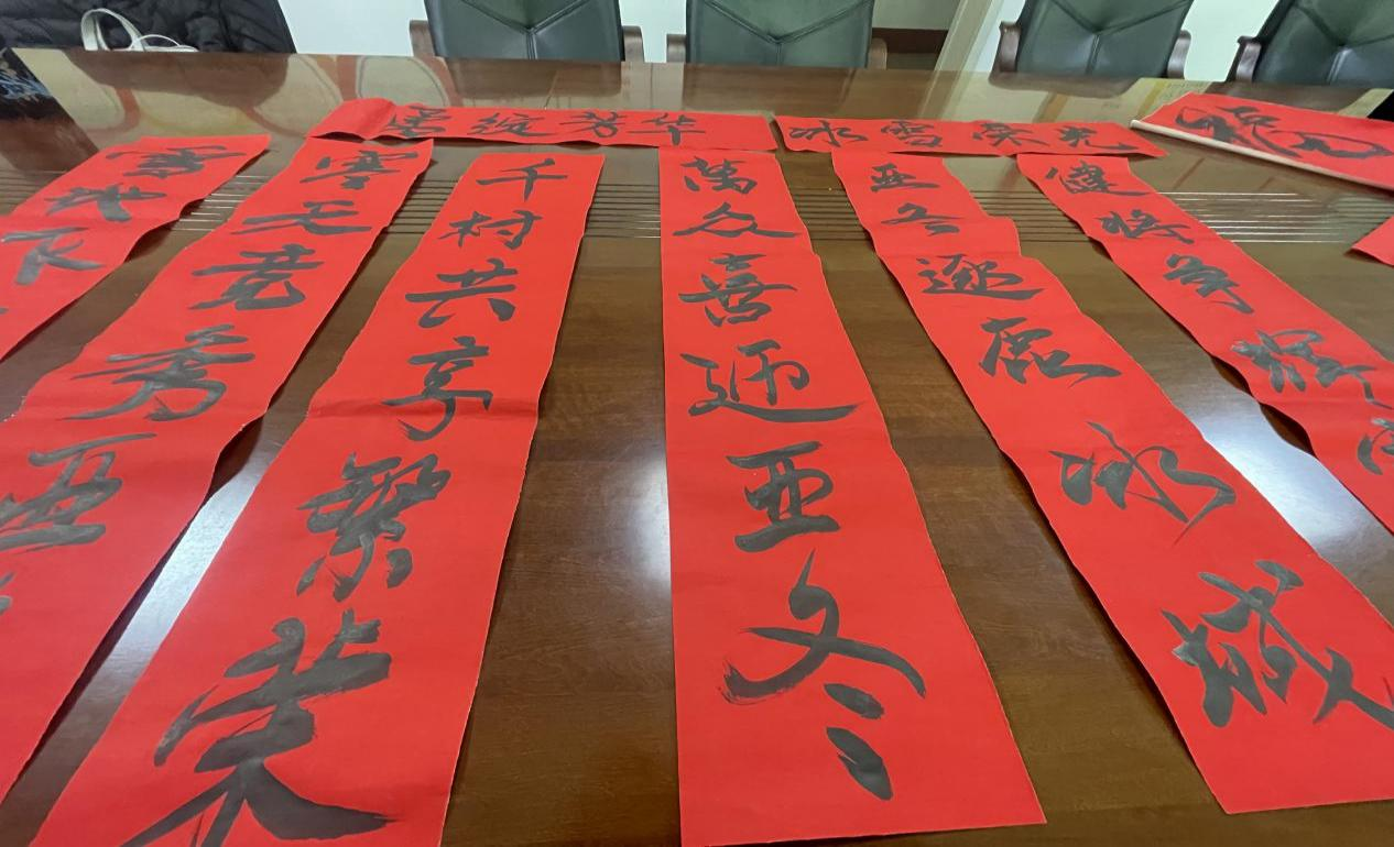 活动中,无论擅长书法与否,大家都怀着满腔热情积极参与。有的凝思片刻,便挥毫泼墨,对亚冬会的祝福化作笔端刚劲有力的联句,“千村共享繁荣 万众喜迎亚冬”等佳作频出;有的反复斟酌,力求用最精妙的字词展现新年新气象;有的专写“福”字,以千姿百态的“福”字来抒发对自己、他人和祖国的祝福。从构思到书写,参与者们齐心协力,不一会儿,一副副寓意深刻的对联和一个个饱含年味的“福”字纷纷亮相。经认真评选,推选2幅优秀作品报送县文明办参展。