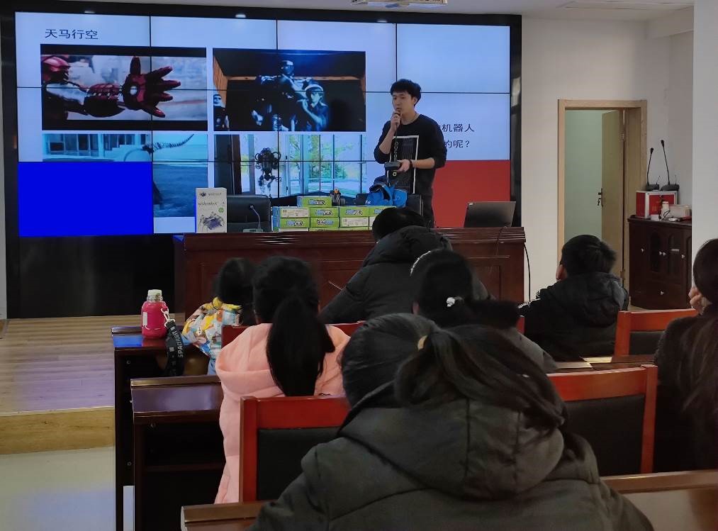 活动开始,主持人首先分别从“什么是机器人”“机器人的发展历程”以及“对机器人的未来展望”三个主要方面展开了介绍。通过沉浸互动式地提问什么是机器人的方式,引发大家对机器人的想象与思考,并引入了机器人的定义及其分类。孩子们聚精会神地听讲,如饥似渴地学习吸收科学知识,积极参加互动。