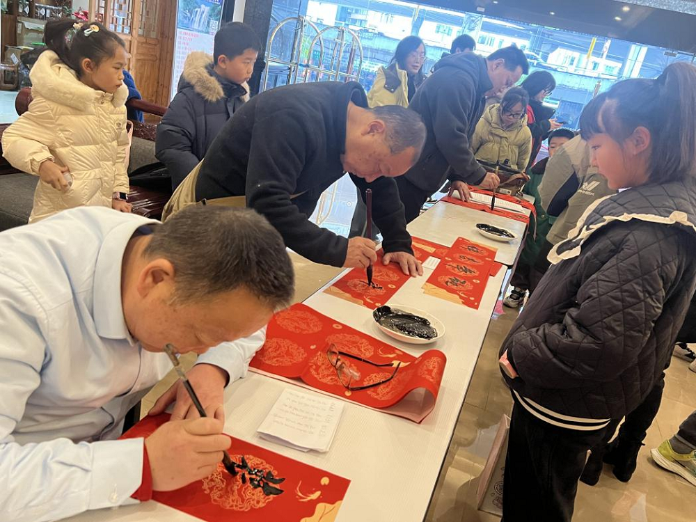 为丰富辖区群众的精神文化生活,1月21日,在农历新年即将来临之际,贵阳市南明区湘雅街道关工委、湘雅街道新时代文明实践所、沙坡社区新时代文明实践站携手贵阳市群众艺术馆开展“写春联、送春联、欢欢喜喜过春节”主题文化活动,将新年的美好祝愿融进笔墨中,在翰墨飘香中营造健康、和谐、喜庆的节日氛围。