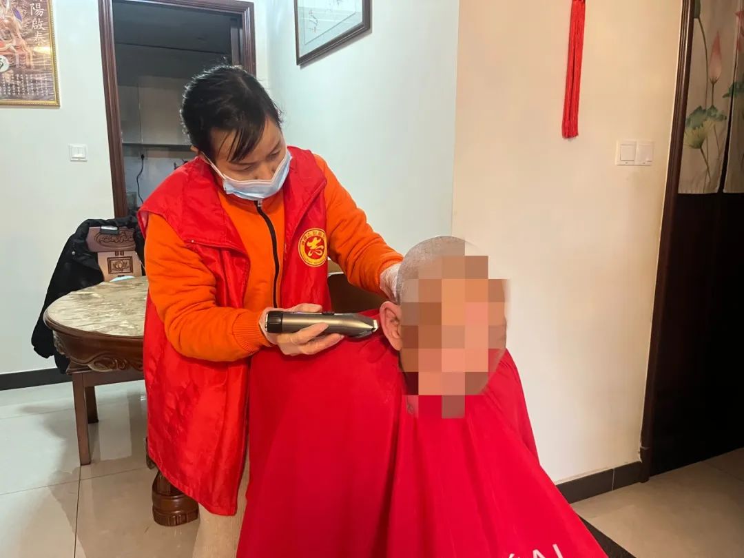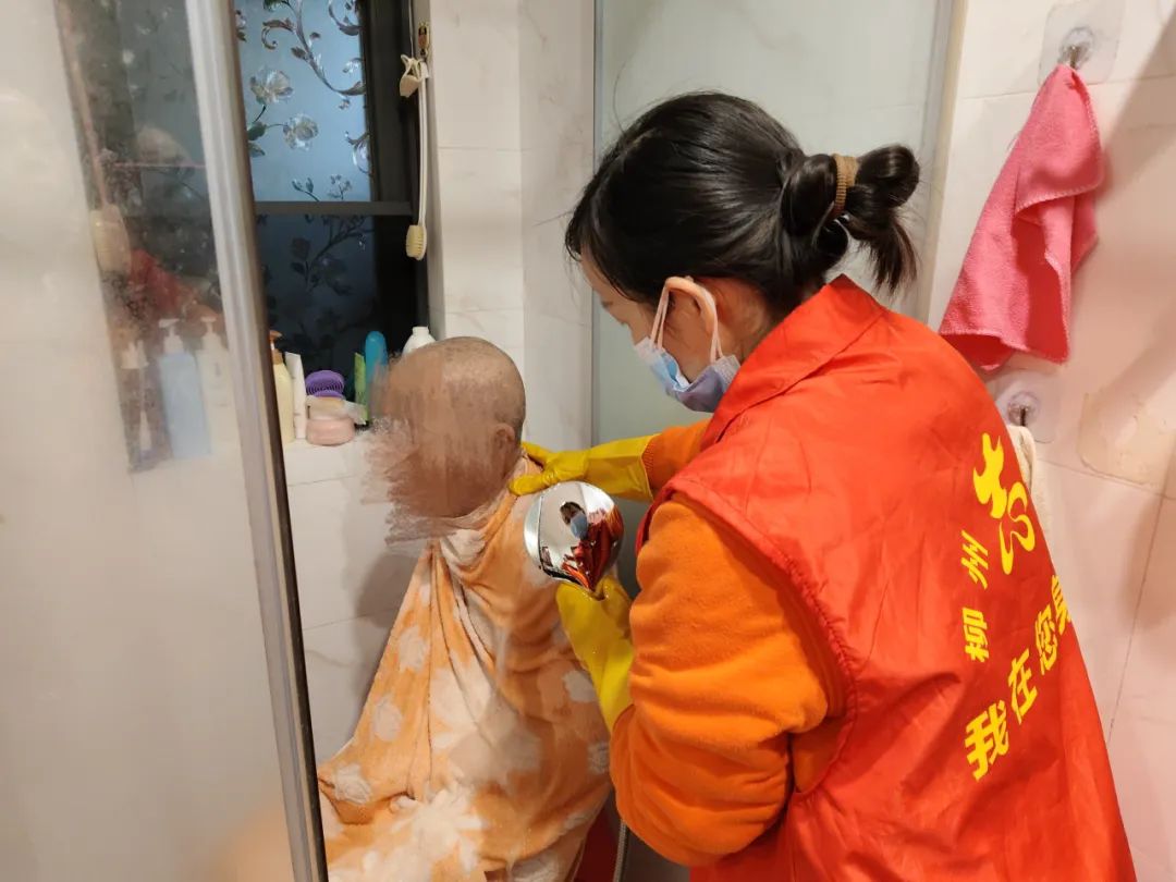 在上门助浴服务过程中,志愿者帮助老人理发、刮胡子、剪指甲,并对老人的居住环境进行了清洁整理。
