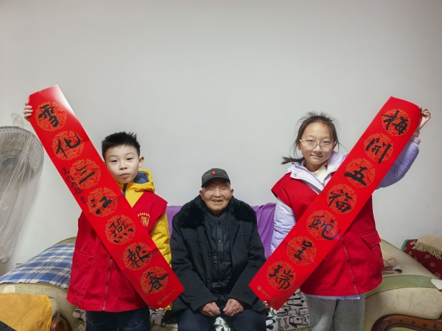 首先小志愿者们来到了辖区独居老人陈奶奶家里,为她送去了寓意美好的春联,热情地张罗着为陈奶奶贴春联、打扫卫生,陈奶奶慈祥地看着这群小天使由衷地感到温暖。随后又来到了老党员赵爷爷家里,亲切和蔼的赵爷爷和小天使们一起唠唠家常,分享着生活中的趣事,最后在一声声祝福中依依不舍的分别。这些特殊而又质朴的人在小天使们的陪伴下,心情愉悦、有说有笑,气氛其乐融融,让这个新年过的温暖而又充实。