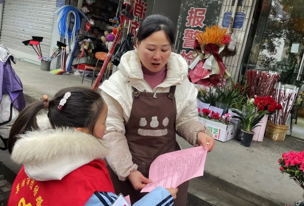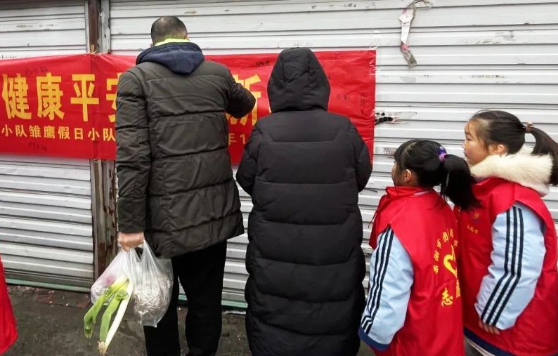 在城西菜市场,小学生志愿者向市民们发放关于禁放烟花爆竹《倡议书》,并宣传燃放烟花爆竹对环境的危害以及可能存在的安全隐患,倡导居民以安全、环保的方式庆祝节日。