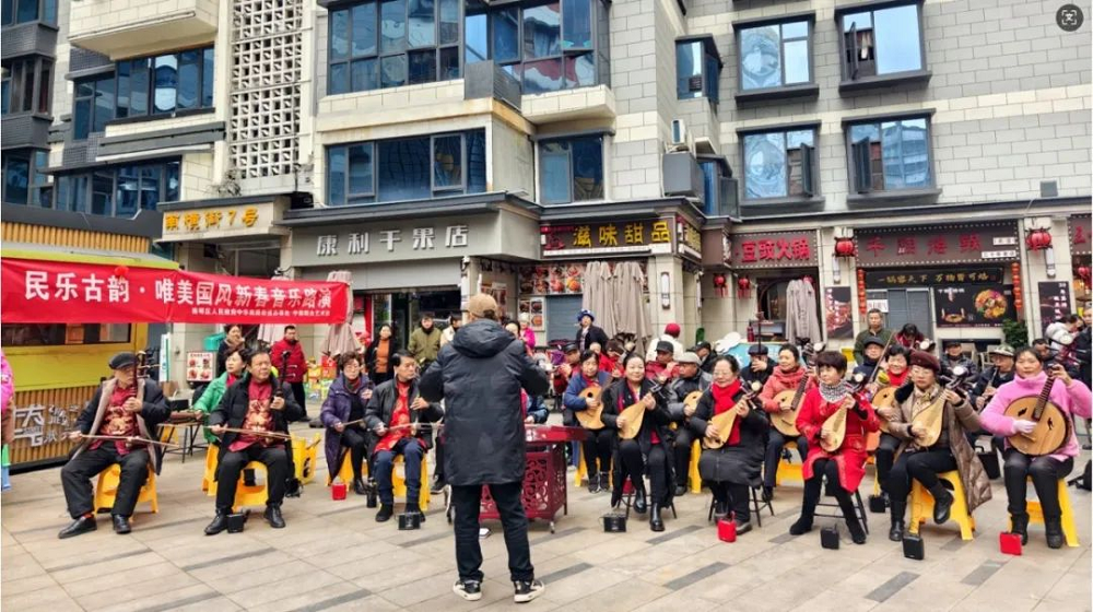 2月3日,正月初六,正值“学校放假 社区开学”的寒假期间,贵阳市南明区中华南路街道举办“民乐古韵,唯美国风新春音乐路演”活动,以国潮艺术为纽带,将传统年俗与现代审美融合,为辖区居民及老年人、学生们献上一场沉浸式的新春文化盛宴。