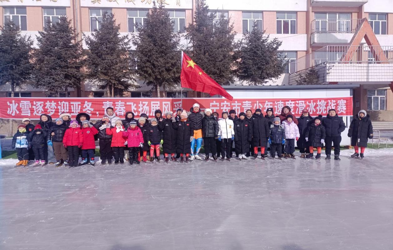 亚冬会开幕当天,宁安市教体局关工委主办的“冰雪逐梦迎亚冬,青春飞扬展风采”青少年速度滑冰挑战赛在宁安市第四中学隆重举行。来自我市中小学、幼儿园的冰雪小将齐聚冰场,用速度与激情点燃寒冬,展现新时代青少年的蓬勃朝气。