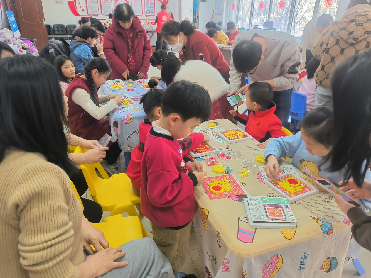 活动当天,社区关工委工作人员提前准备了适合儿童操作,充满年味的手工材料包。活动开始前,志愿者首先向孩子和家长们介绍了相框的DIY技巧,随后便让孩子自行开始DIY创作。孩子们仔细粘贴装饰,每一个步骤都认真而专注。家长们也在一旁给予协助和鼓励,亲子之间的默契配合让现场充满了温馨和欢乐。孩子们在手工制作中享受乐趣,体验合作与分享的快乐。志愿者们也不时的给予耐心指导,确保每位小朋友都能顺利完成作品。