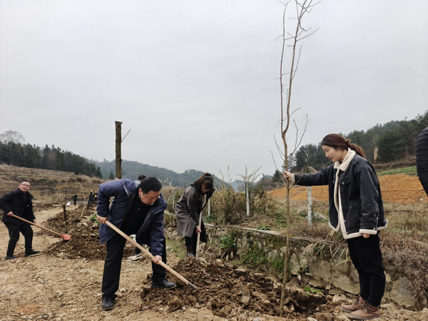 春回大地催新绿,植树造林正当时。为认真践行习近平生态文明思想,厚植生态发展底色,增强辖区群众的环保意识。2月5日,农历新年上班第一天,贵州省贵阳市乌当区百宜镇党委书记、关工委主任李盛带领关工委干部、全镇干部职工、各村关工委主任等开展以“共建美丽贵州·共享生态福祉”为主题的义务植树活动,以实际行动为百宜镇建设发展增绿添彩。