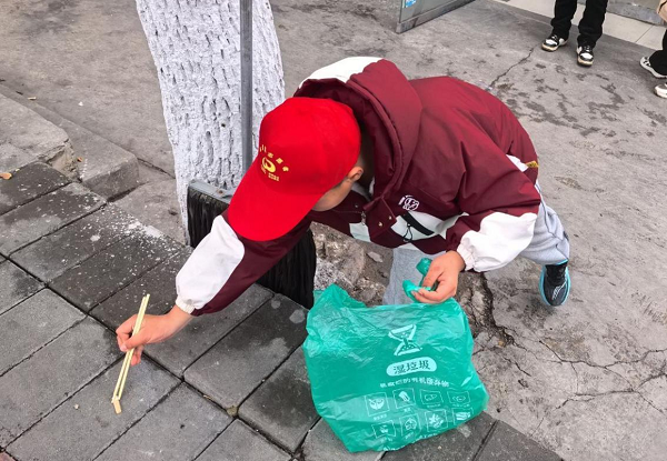 习成效,同时激发了他们参与保护环境和垃圾分类的积极性。随后,小小志愿者们在工作人员的带领下,手持火钳、垃圾袋等清洁工具走进街头巷尾,认真捡拾沿街的白色垃圾、塑料瓶、烟头等,并将捡拾的垃圾进行分类投放。
