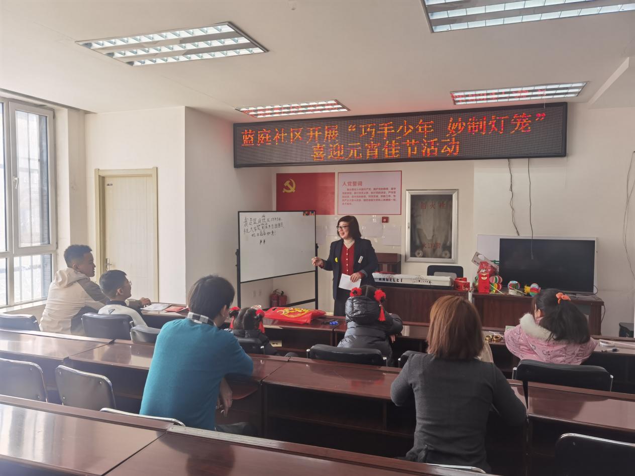 为弘扬和传播中华民族传统文化,加深青少年对年俗文化的认识,为了进一步丰富社区青少年的文化生活,锻炼他们的动手能力,拓展想象空间,蓝庭社区关工委于2025年2月11日在社区幸福教育课堂开展“巧手少年,妙制灯笼”喜迎元宵佳节活动。