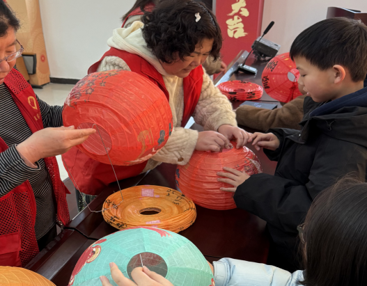 活动开始,制作元宵花灯区域便围满了大人小孩。桌上摆放着彩纸、剪刀、铁丝等丰富材料,在志愿者的耐心指导下,大家纷纷动手。小朋友们发挥奇思妙想,将花灯装饰得童趣满满。志愿者们手法娴熟,不一会儿就制作出精美的传统花灯。一盏盏花灯逐渐成形,五彩斑斓,承载着大家对新一年的美好期盼。