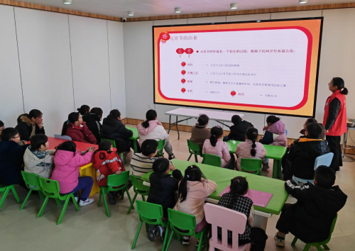 活动开始,志愿者为小朋友们带来了元宵节来历和发展历史的精彩讲解。通过生动的PPT展示和有趣的故事讲述,孩子们不仅了解到了元宵节的起源,还知道了它如何从最初的祭祀活动逐渐演变成今天全民欢庆的灯节,包括吃元宵、赏花灯、猜灯谜等丰富多彩的习俗。这一环节不仅增长了孩子们的历史文化知识,更激发了他们对传统文化的浓厚兴趣。