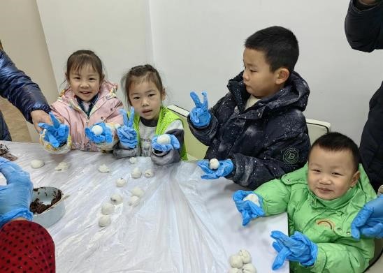 活动开始,社区工作人员告知孩子们今天的活动内容,一是搓元宵,二是猜灯谜,并将制作元宵的材料整齐摆放桌子上,孩子们围坐在一起,迫不及待地想要大显身手。在工作人员的耐心指导下,孩子们忙得不亦乐乎,有的揉面团,有的放馅料,尽管手法尚且稚嫩,但每一个元宵都包含着孩子们满满的期待。不一会儿,形态各异的元宵摆满了盘子,大家看着自己的劳动成果,脸上洋溢着自豪的笑容。