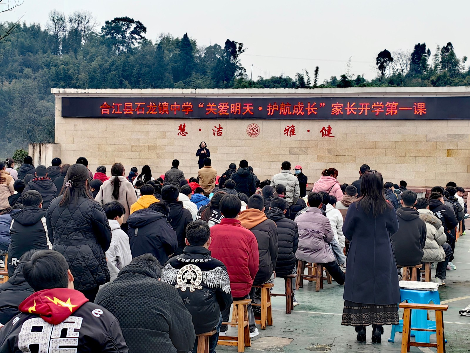这天上午,石龙中学迎来了新学期开学时光,许多即将外出务工的家长亲自把孩子送进校园,并陪伴孩子一起聆听这堂以家校共育、关注未成年人心理健康为主题的开学第一课。