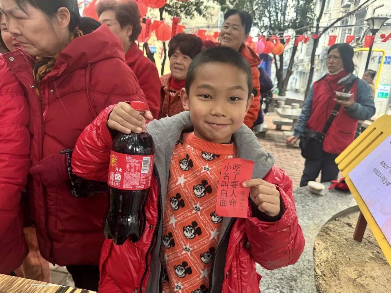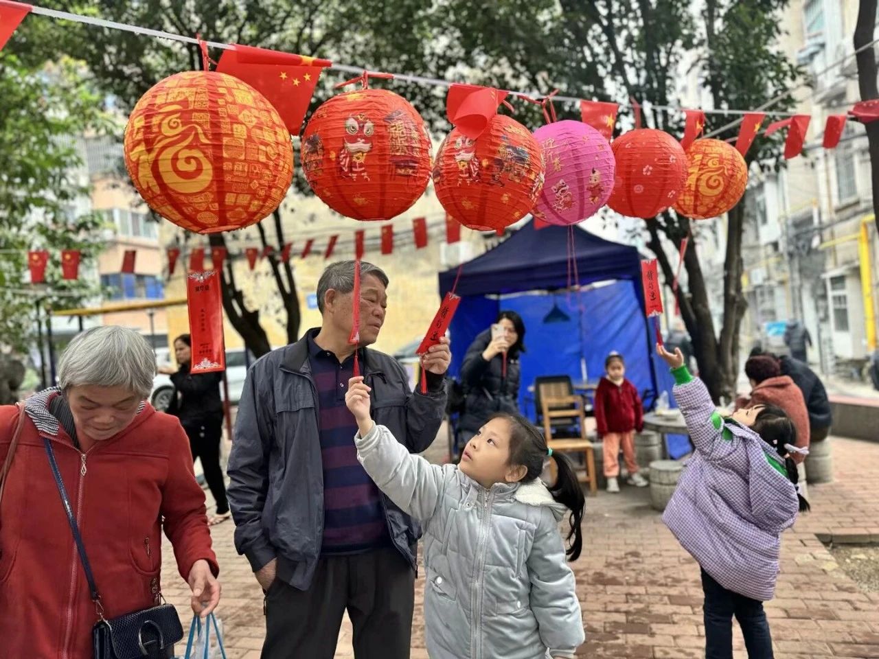 活动现场张灯结彩,高高挂起的大红灯笼、一条条灯谜“翩翩起舞”、风中飘舞的小红旗,传递着传统文化的独特魅力,引人驻足观赏;色彩鲜艳的“福”字,传递着新年的美好祝愿,它们如同冬日里的暖阳,瞬间点燃了节日的氛围。本次猜灯谜活动集趣味性、知识性和互动性为一体。灯谜内容广泛,涵盖党史、廉政文化、传统文化、孝老爱亲、绿色环保、文明城市创建等方面知识。大家纷纷围上来,开始驻足认真地看谜语,时不时手里比划着,思索着答案,大家你一言我一语讨论着,现场一片欢声笑语,传统文化的魅力在创意十足的灯谜中不断彰显。