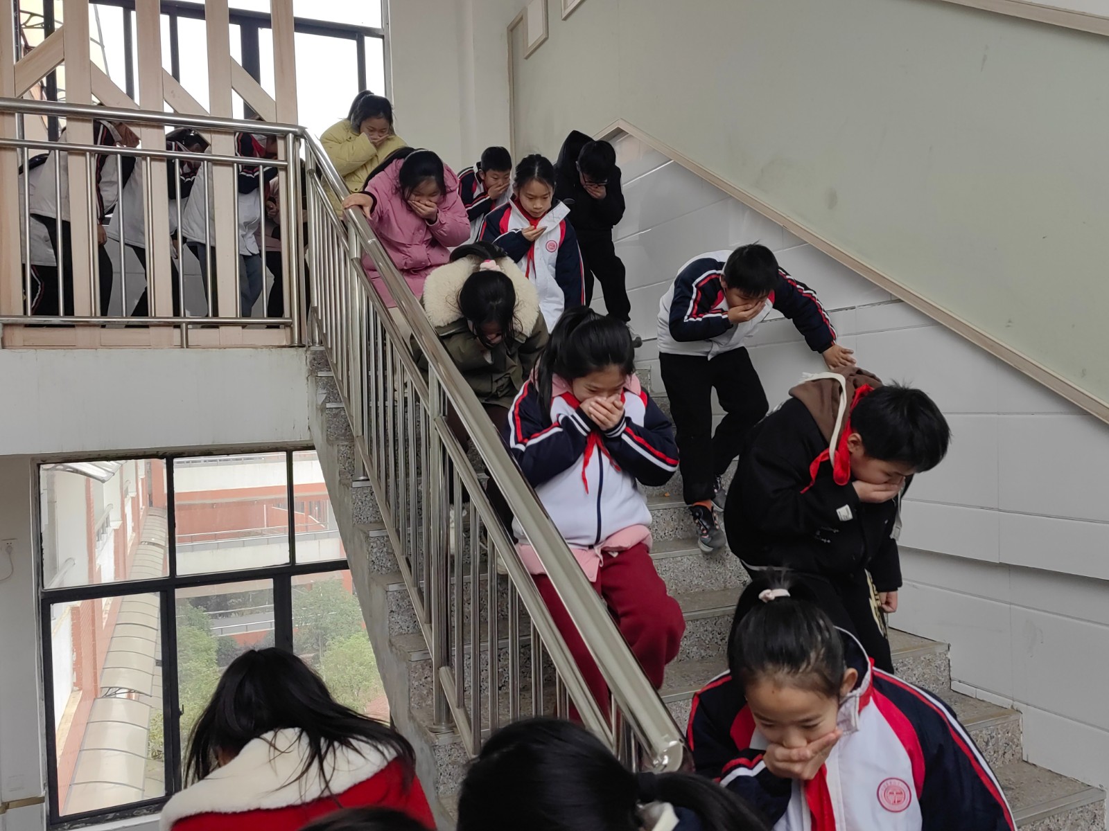 随着一阵尖锐而又急促的火警警报声响起,各楼层疏散老师迅速到达各自的岗位。学生在老师的引导下,捂住口鼻,低姿势弯腰前行,从教室有秩序、不慌乱地沿着指定路线撤离到安全地带。疏散、集合、清点、上报,整个过程有序、迅速、配合严密。演练结束后,学校党支部书记、关工委主任余琴对本次演练活动进行了小结,她充分肯定了此次消防应急疏散演练,并希望全体师生不断增强自我保护意识,师生要认真总结演练经验,提高自身的消防安全意识和应急疏散能力,从而实现“人人会逃生,个个会应急”。