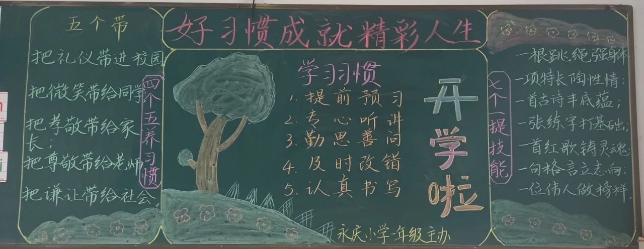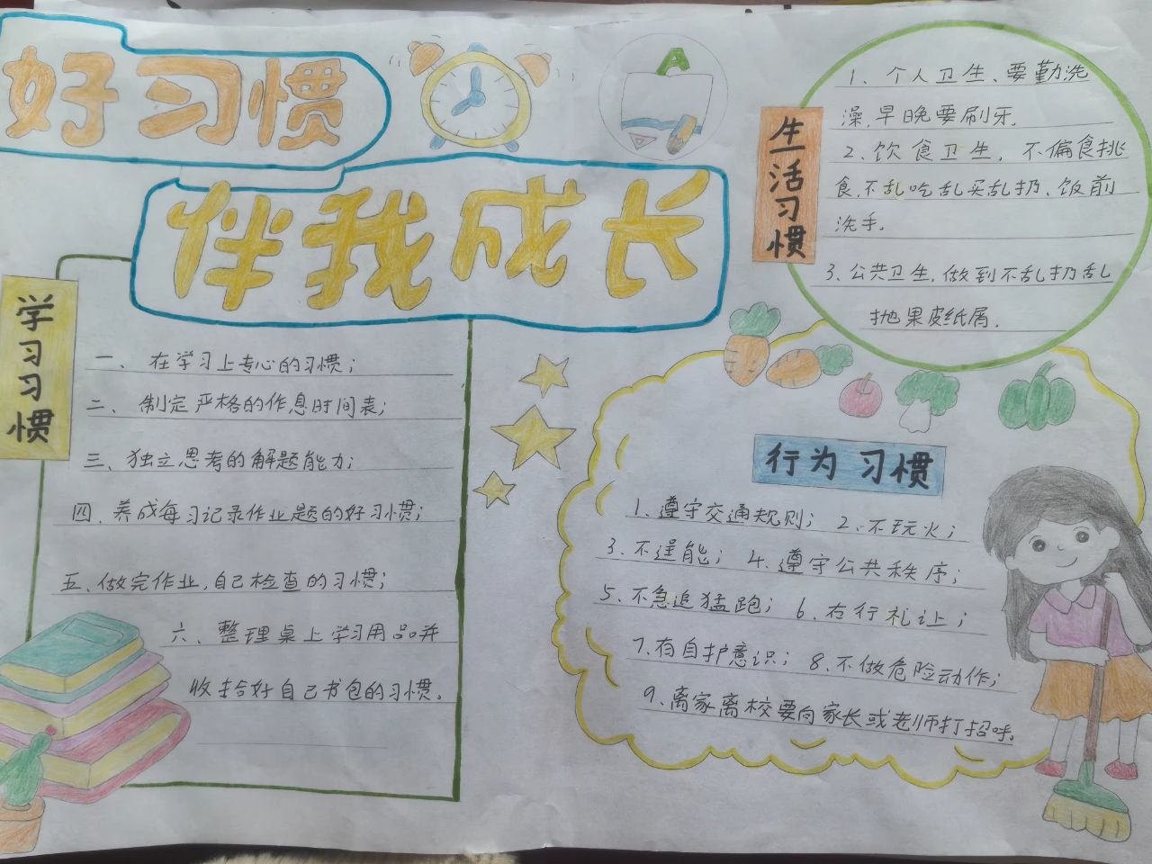各班开展了“播种好习惯 成就好人生”的主题队会。辅导员老师引导学生深入探讨好习惯的内涵与重要性。同学们积极参与,纷纷分享自己在学习和生活中的好习惯以及因好习惯带来的积极变化。针对一些不良习惯,大家也展开了热烈讨论,共同探讨改进方法。同时,各班还通过手抄报、黑板报等形式将“四个五”好习惯融入其中,引导学生从日常的点点滴滴践行好习惯!