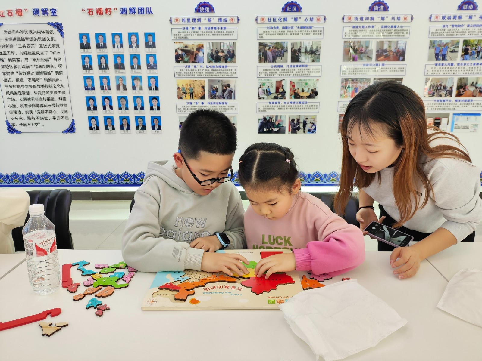 关工委工作人员通过视频短片让孩子们了解中国地图的基本构造和各省市的分布情况,并通过生动讲解和互动问答,让大家更加直观、深入地了解中国地理,感受祖国辽阔的疆土。随后在工作人员指引下,孩子们聚精会神地对中国地图进行拼接,在拼接地图的过程中加深了孩子们对中国地理相关知识的认识与理解。孩子们纷纷表示,日后将继续探索、学习,用心去感受祖国的每一寸土地、每一种文化。