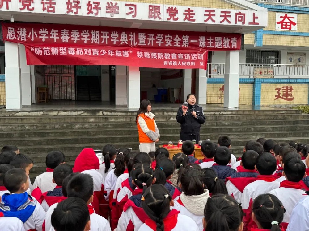 在开学典礼上,民警向同学们详细讲解新型毒品的种类、危害及禁毒相关法律法规,科普毒品防范知识。他引用真实青少年涉毒案例,引导同学们提高对毒品的防范意识,谨慎交友,不进入治安复杂场所,并倡导大家将禁毒知识分享给家人和朋友。随后,同学们参观了仿真毒品、禁毒知识展板,禁毒工作人员和社工在旁答疑解惑,巩固学生学到的禁毒知识,告诫同学们新型毒品伪装性和迷惑性强,不接受陌生人递来的零食和饮料。