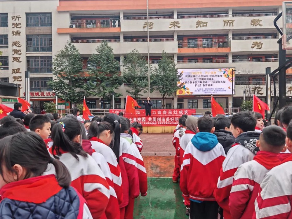 为进一步普及禁毒知识,教育引导青少年远离毒品,全力呵护青少年身心健康。2月17日,在春季开学之际,贵州省贵阳市花溪区禁毒办、区教育局、花溪区关工委、贵州省第二强制隔离戒毒所驻花溪工作组等携手分别走进花溪区部分中小学校用一堂堂“开学第一课”为新学期校园安全与学生健康成长筑牢防线。