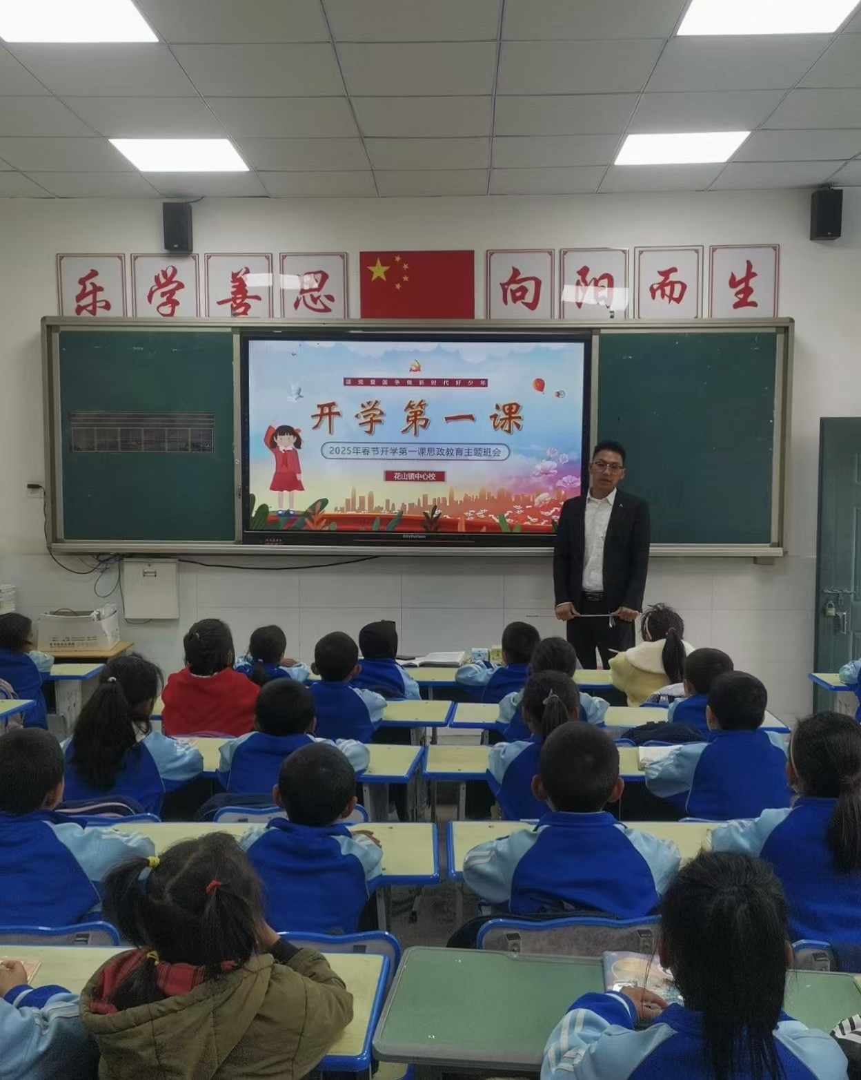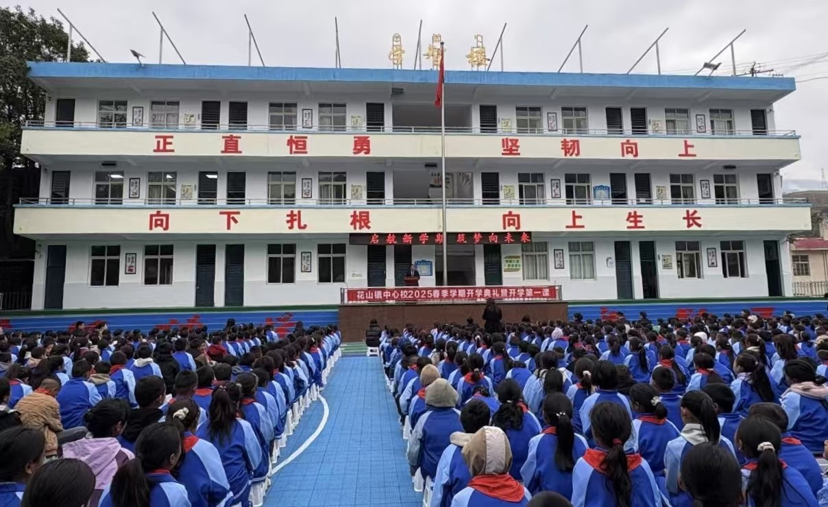 2月17日,花山镇中心校全体师生齐聚操场开展以“起航新学期,筑梦向未来”为主题的开学典礼暨开学第一课活动。旨在加强学生的爱国主义教育、安全教育、心理健康教育等,帮助学生树立正确的世界观、人生观和价值观,为新学期的学习生活奠定坚实基础。