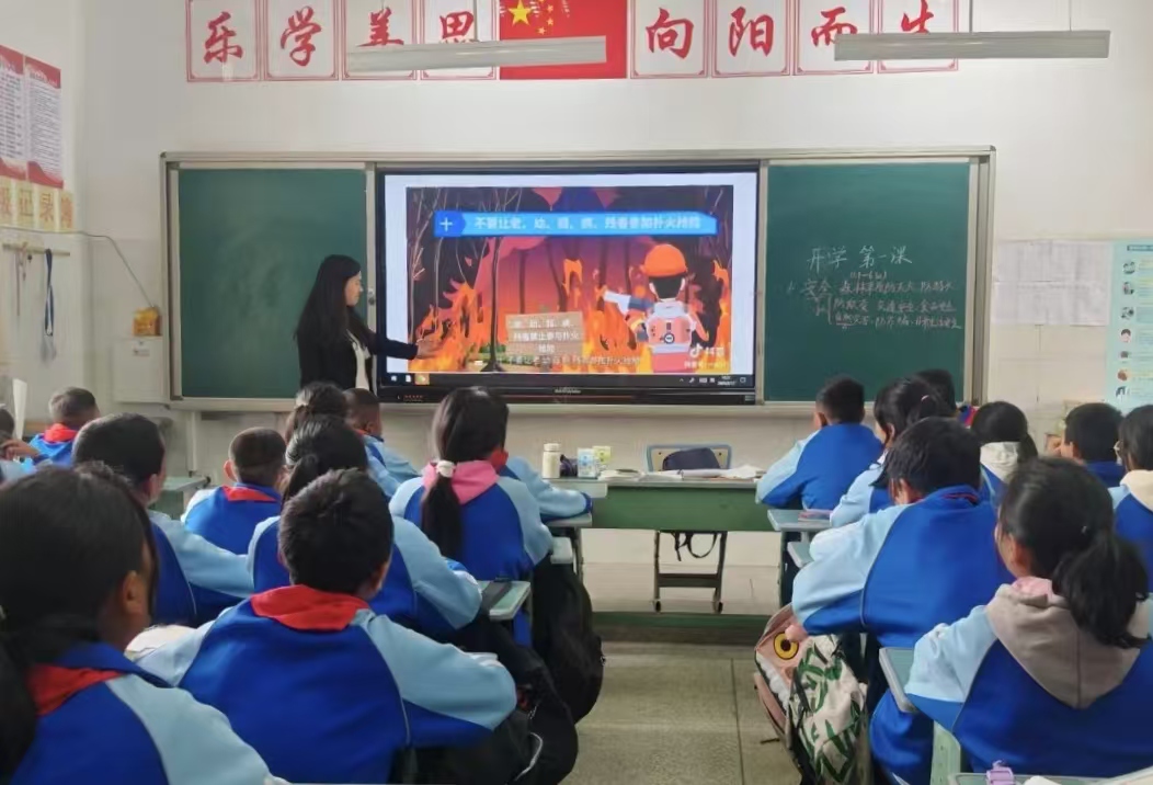下午,各班开展“安全第一课”主题班会,通过观看四川省森林草原防灭火“大手拉小手”宣传教育片等视频,强调“森林草原防灭火”“防欺凌”“防溺水”三个重点安全知识。