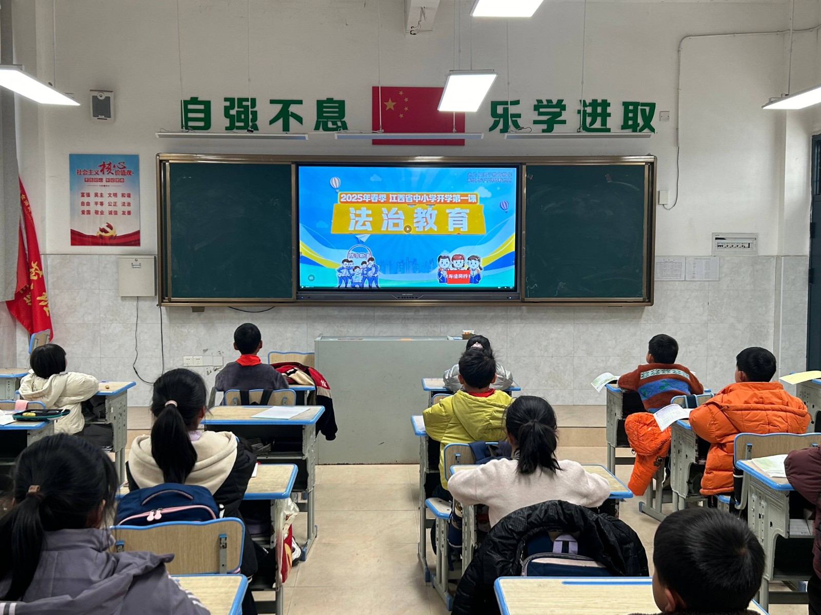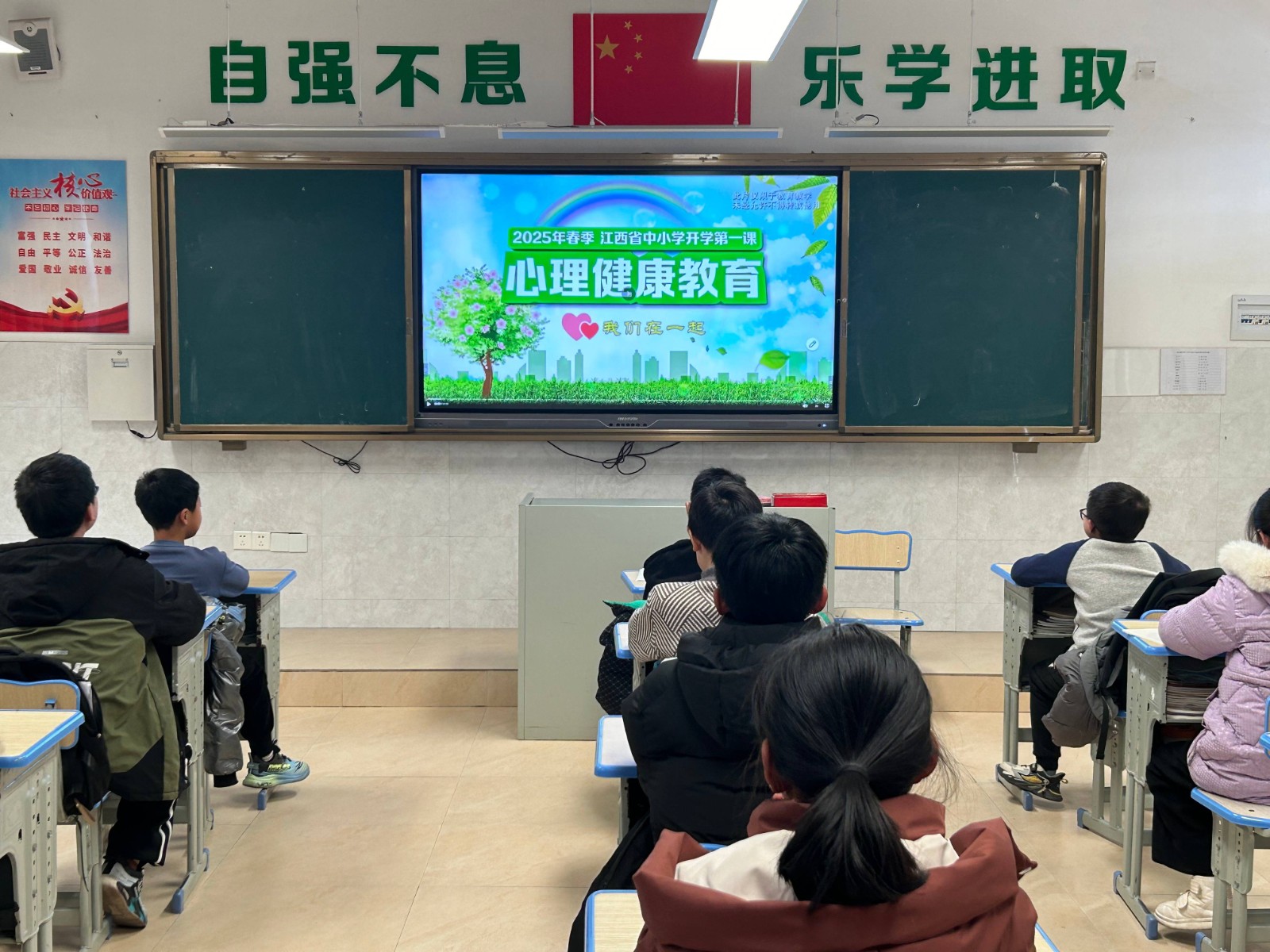 学校关工委组织各班通过江西智慧教育平台等方式统一收看了“开学第一课”并围绕消防安全、交通安全、防欺凌安全、心理健康安全防溺水安全等方面,用生动具体的事例警示、告诫学生,牢固树立“安全第一”的思想,增强了学生的安全意识。