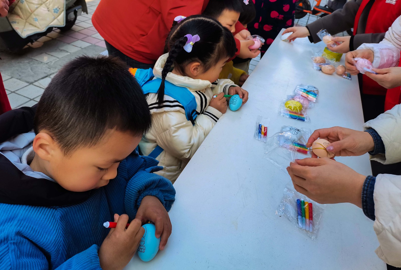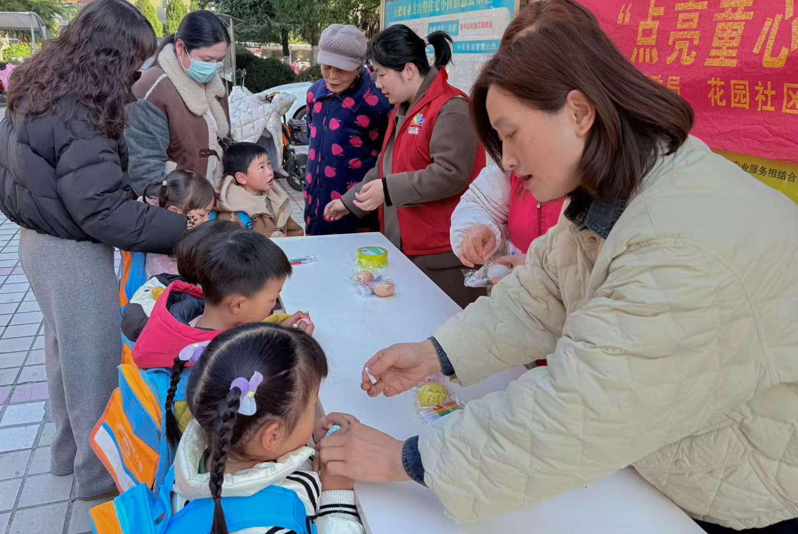 2月18日下午,巢湖市卧牛山街道花园社区关工委联合社区新时代文明实践站在辖区康乐新村广场开展“点亮童心 趣享时光”鸡蛋壳绘画活动,吸引了许多孩子参加。