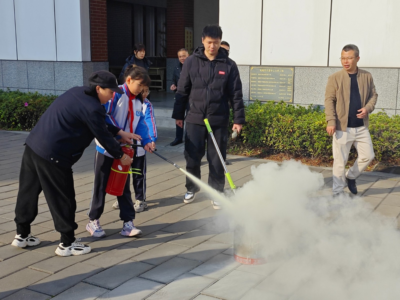 当日,校园内警报声骤然响起,拉开了演练的序幕。各班老师迅速反应,按照预定疏散方案,组织学生用湿手帕捂住口鼻,低姿前行,沿着指定路线快速有序地撤离教室。接着,老师向学生讲解如何使用灭火器——正确的使用方法:“一提、二拔、三握、四压……”简单的口诀,让同学们轻松掌握了灭火要领。随后还进行实物操作,并带领学生进行亲自实践,成功扑灭模拟火源,切身体验了灭火的过程。演练结束后,方校长对本次活动进行了总结,肯定了全体师生在演练中的出色表现,同时也指出了个别细节问题,强调安全无小事,希望大家始终保持警惕,将消防安全牢记心间。