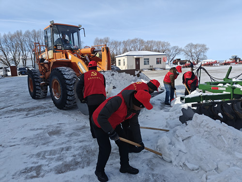 随着气温的回升,积雪开始融化,将给农具检修、种肥和其他物资准备造成严重的影响。农场有限公司各管理区关工小组迅速响应,组织党员、“五老”志愿者和部分职工,调配铲车、四轮车等机械设备,对农具场、晒场等积雪进行集中清理。“五老”们和职工一起手持铁锹、扫帚等工具,仔细清理机械难以触及的边角区域以及农机具上的积雪,确保清雪工作无死角。党员干部们更是以身作则,冲锋在前,带领大家齐心协力,克服了作业面积大、积雪清理难度高等困难,大大加快了清雪进度。