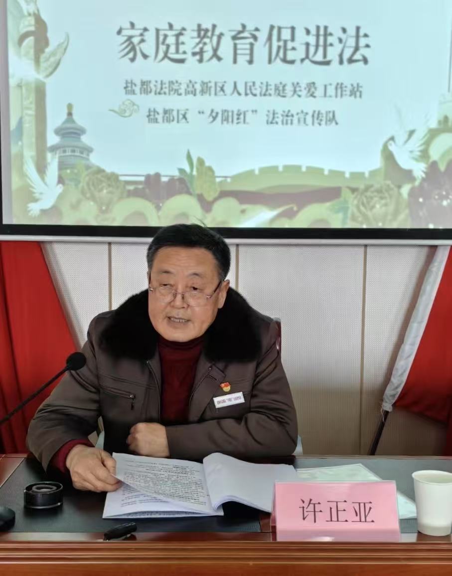 春节刚过,新学期刚开学。区法院高新区法庭“关爱工作站”与区“夕阳红法宣队”的老法官们凭多年的工作经验,一致认为要搞好未成年教育,要呵护未成年,就要家长先行。先要对家长进行法律知识的宣传学习。他们于2月20日上午来到盐龙街道乔庄社区,进行《家庭教育促进法》的宣传讲解。许正亚老法官用鲜活的案例对照法律条款,用身边的人,身边的事,讲述家庭教育促进法的有关内容,说明未成年人违法犯罪行为的发生与家庭教育关系。与课的近90名家长,听课后,议论纷纷,深感家长责任重大,并表示不能把孩子完全推给学校,推给社会。柯护孩子,要从自己做起,对孩子教育要从小开始,一定要依法进行,为培养一个合格的孩子尽到家长的责任。