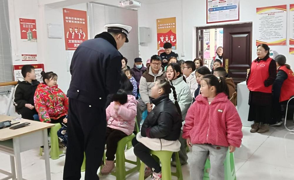 为进一步增强辖区未成年的交通安全意识,提高自我保护能力,减少交通事故的发生,2月14日,贵阳市南明区二戈街道办关工委联合回龙路社区综合文化服务中心,特邀交警二大队的警官,组织开展“学校放假,社区开学”——文明交通你我同行宣传活动。