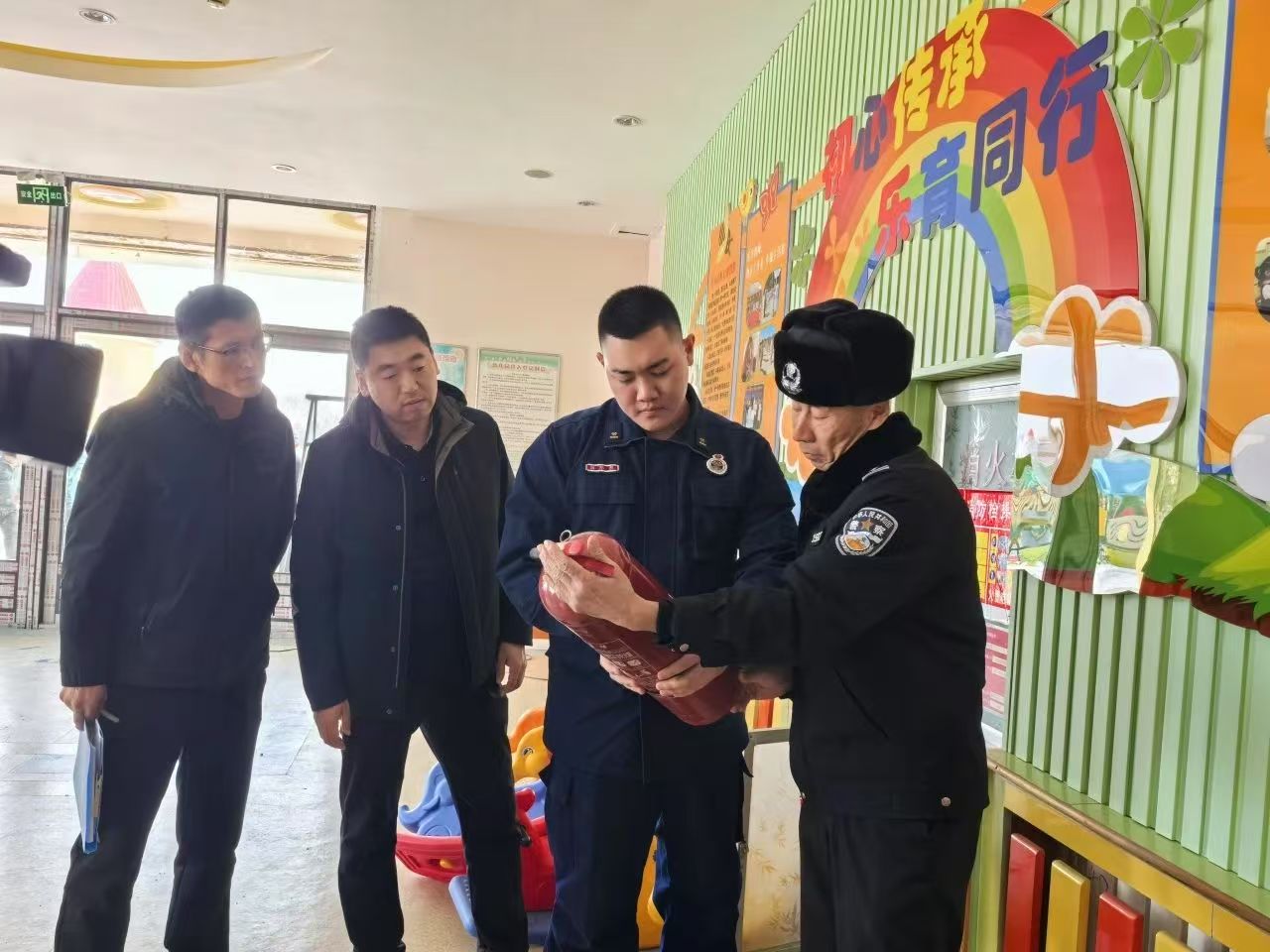 为了进一步加强幼儿园安全管理,保证幼儿健康成长,2月28日,大兴农场幼儿园关工小组,联合农场公共管理办公室、安全应急办、消防队和电业等部门,对开学前的幼儿园进行了全面细致的检查。