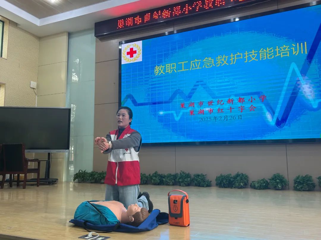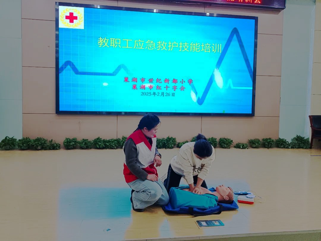 为切实提升教职工应对突发卫生健康事件的应急处置能力,助力平安校园建设,2月26日下午,安徽省巢湖市世纪新都小学关工委邀请巢湖市红十字会的专业急救人员为全体教职工开展了一场关于心肺复苏、AED急救技能及海姆立克急救法培训,增强应急救护意识,提高自救互救能力。