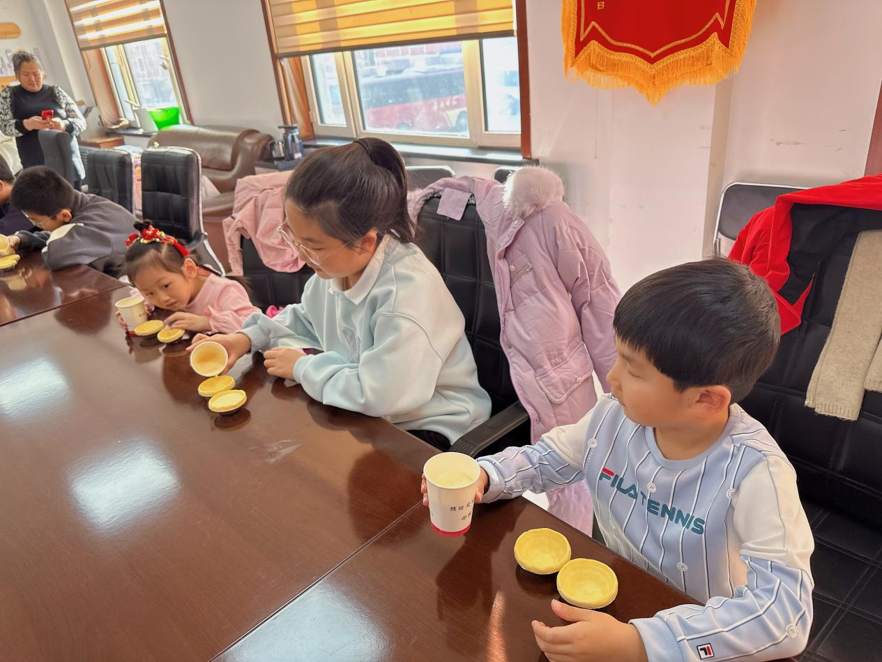 活动中,“爱心妈妈”提前准备好了烘焙蛋挞所需的材料和工具,和孩子们共同制作蛋挞。孩子们从搅拌面糊到挤入模具,再到放入烤箱烘烤,每一个步骤都充满了乐趣和挑战。在等待蛋挞出炉的过程中,孩子们还互相交流了各自的烘焙心得和技巧,现场气氛十分融洽。当香飘四溢的蛋挞出炉后,大家迫不及待地开始给自己的蛋挞进行装饰,“爱心妈妈”在一旁耐心地指导和鼓励孩子们,在饱含着浓浓亲情的过程中,孩子们品尝香甜蛋挞的同时,也享受着“爱心妈妈”给予的幸福的味道。