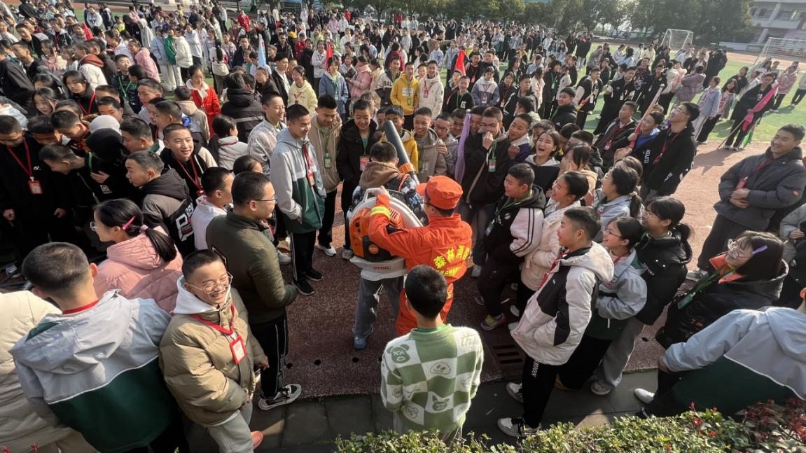 理论知识讲解结束后,进入演示环节。专业人员现场展示了各类森林防灭火工具,包括灭火弹、风力灭火机、无人机探测设备等,详细介绍它们的功能、适用场景及操作方法,并邀请师生上台体验。在专业人员的指导下,师生们亲手操作灭火工具,切身体会到这些工具在森林火灾扑救中的作用,也初步掌握了基本的使用技巧。