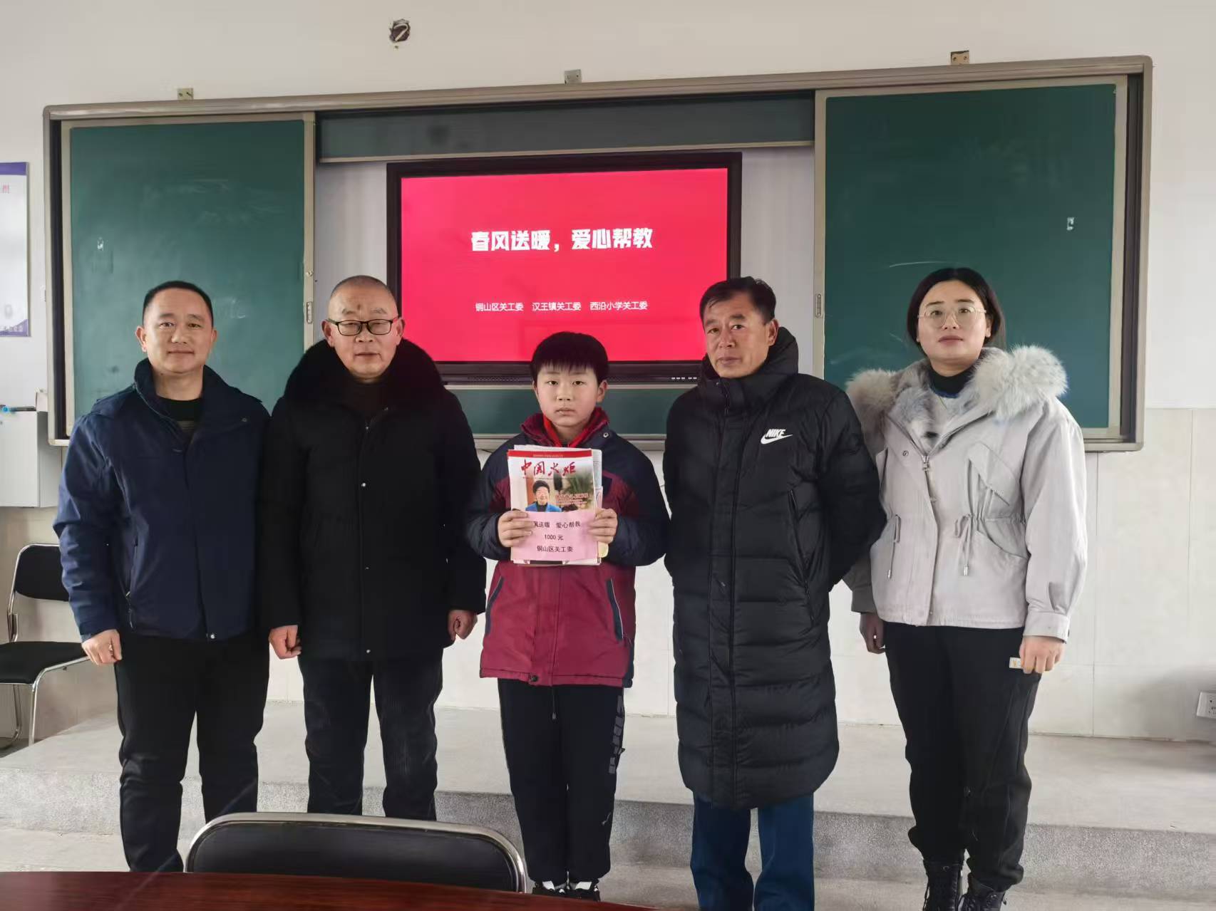 3月4日上午,江苏省徐州市铜山区汉王镇关工委常务副主任宋明新、朱先伟按照区关工委的文件精神要求,到虎腰小学(李梦琪)、西沿小学(李昌峻)开展“春风送暖,爱心帮教”捐助活动,向两位受捐助的学生每人送去1000元慰问金,同时还给两位受捐助的学生赠送了《关心下一代周报》《小海燕》报、《中国火炬》杂志和笔、本子等其它学习用品!