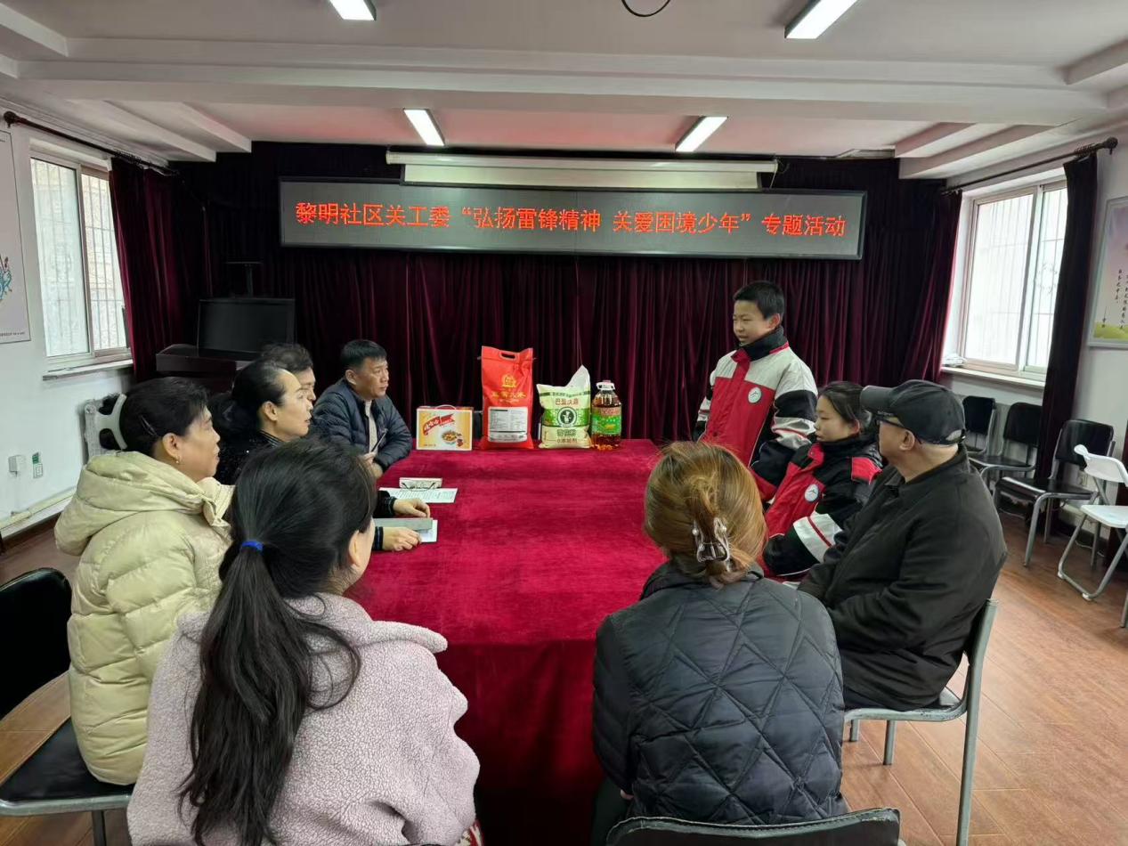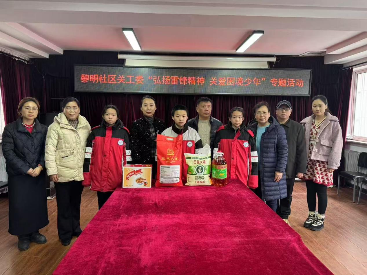 深入贯彻学习习近平总书记视察辽宁的重要指示精神的热潮中,在广泛开展学习雷锋精神活动的浓厚氛围里。3月4日,黎明社区党委、关工委开展关爱困境少年送温暖专题活动。东塔街道关工委常务副主任马凤珠,区人大代表吕富强,黎明社区党委书记、关工委主任刁艳秋、社区关工委专干沈佳欣和社区党员,“五老”代表,志愿者参加。