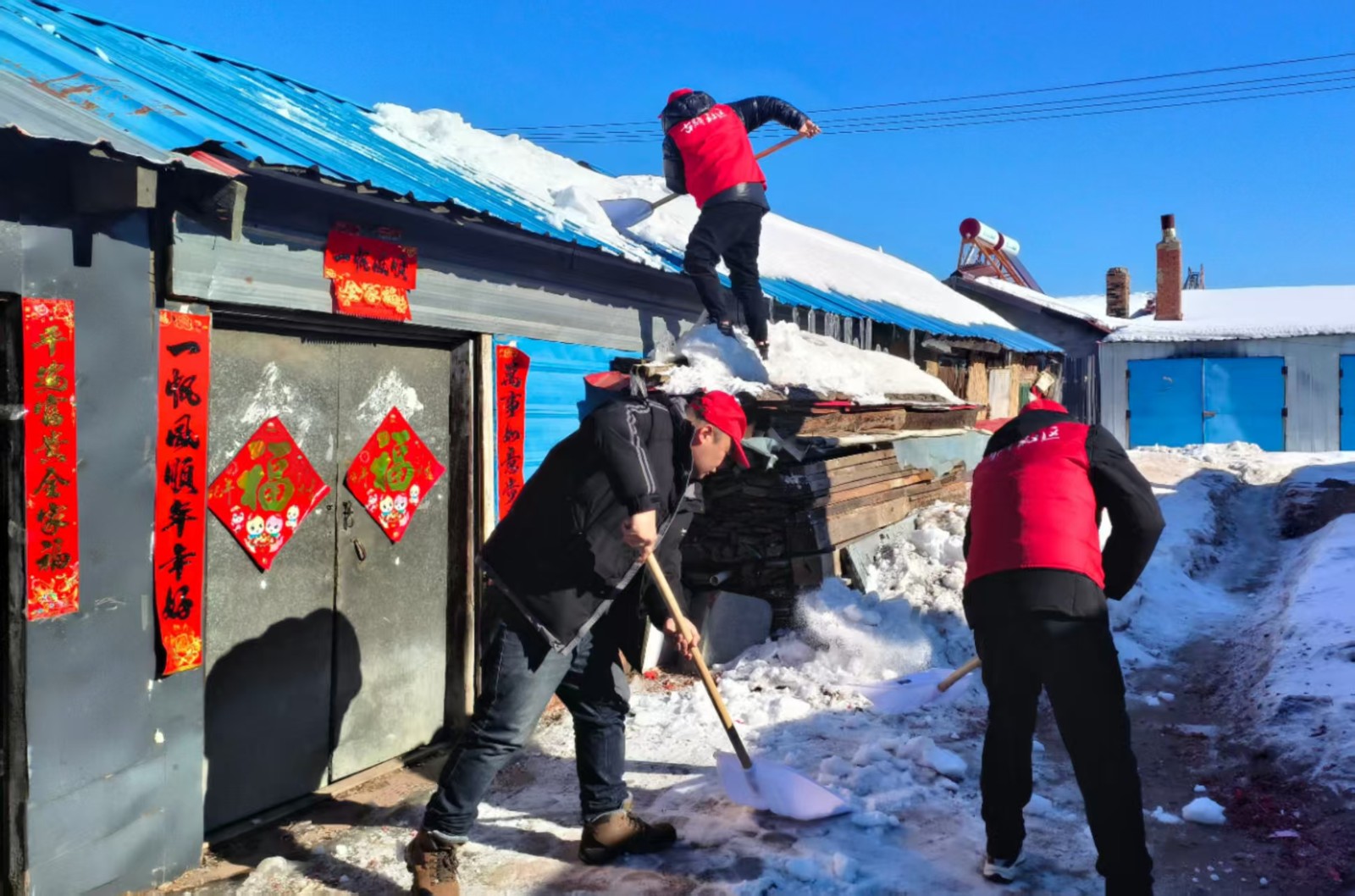 除雪保畅,安全出行。随着气温逐渐回升,冰雪融化,屋顶落雪现象时有发生,为确保平房区失独、残疾、空巢等弱势群体出行安全,志愿者们深入平房区帮助他们清理屋顶上的积雪和冰凌,消除安全隐患。