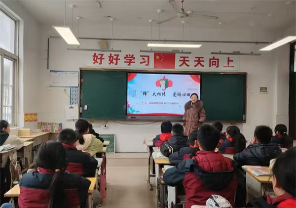 活动前。学校关工委副主任、德育处主任刘建利对本次主题班会活动提出具体要求。班会课上,老师们通过多种形式引导学生了解雷锋事迹:有的班级播放雷锋有关的电影,让学生们了解雷锋平凡伟大的一生;有的班级组织学生讲述自己收集到的雷锋故事,让大家对雷锋有了更立体的认识;有的班级唱学习雷锋有关的歌曲,从中领会雷锋的精神实质。老师们引导学生领悟雷锋精神的实质。学生们纷纷举手发言,老师们适时总结,点明雷锋精神的核心是全心全意为人民服务,其实质是热爱祖国,处处把国家和人民利益放在首位,为实现共产主义而奋斗的献身精神。学生们提出,要从校园生活的点滴小事做起,比如主动帮老师整理教具、为学习困难的同学辅导功课。利用课余时间成立“雷锋志愿服务小队”,定期参与校园环境维护,清理校园角落的垃圾。计划走进社区,为孤寡老人做一些力所能及的家务,给老人们带去关怀与陪伴。
