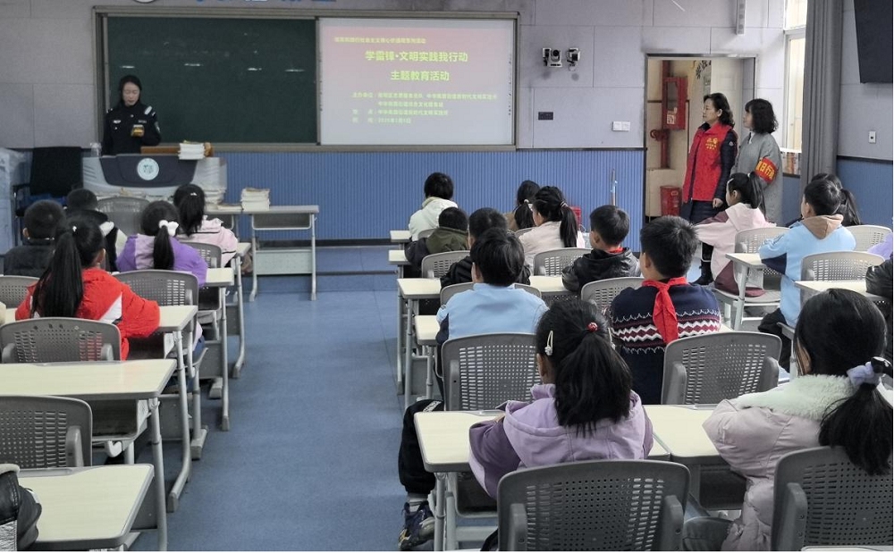 雷锋精神主题宣讲:街道宣讲团成员走进校园,以《雷锋精神永放光芒》为题,为师生带来生动的思政讲座。宣讲团成员结合自身经历,用鲜活的故事深入浅出地阐述雷锋精神的内涵,引导学生从点滴小事做起,学习雷锋精神。另外还开展了“学雷锋 文明实践我行动”、“文明交通 平安童行”、《未成年人保护法》的宣传。