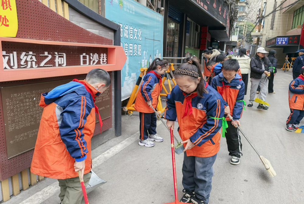 校园与社区志愿服务:学生们在街道志愿者的带领下,走出校园,走进社区,开展环境清扫、关爱老人、文明宣传等志愿服务活动,用实际行动践行雷锋精神。