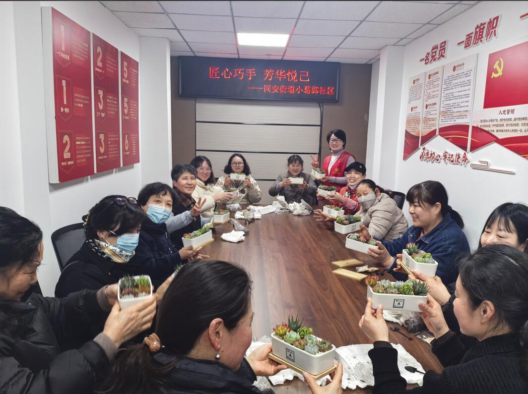 在这个春风轻拂、万物复苏的美好时节,我们即将迎来三八国际妇女节。为了让女性朋友们度过一个温馨、有趣且富有意义的节日,3月5日下午,合肥市包河区同安街道小葛郢社区关工委特别策划了一场别开生面的 “巧手匠心,芳华悦己”多肉 DIY 活动。