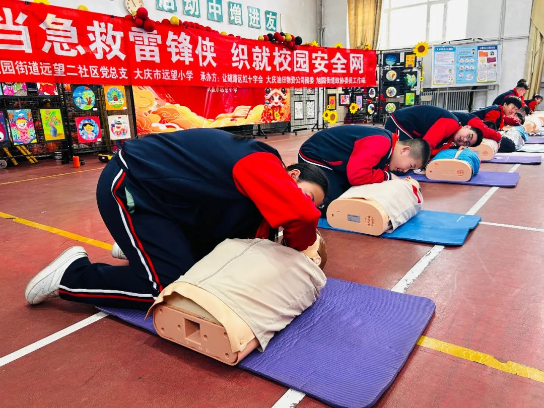 3月5日,在第62个学雷锋纪念日到来之际,大庆市让胡路区旭园街道远望二社区关工小组联合让胡路区关工委、区红十字会、大庆油田物资公司团委、旭园街道政协委员工作站走进远望小学开展“争当急救雷锋侠 织就校园安全网”主题活动,以一场特殊的“开学第一课”开启新学期。