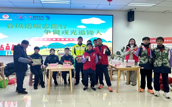 在志愿集市政策宣讲区,政策咨询、健康服务、文明互动等多元项目吸引大批居民驻足。退伍老兵们和青少年志愿者们穿梭其中为居民们讲解宣传各种政策法规。在便民服务区,爱心义诊、义剪区排起长队,医护人员为大家量血压、提建议。志愿打卡区人气火爆,老兵携手青少年志愿者漆染“文明书签”,将“礼让行人”“垃圾分类”标语融入水墨画。现场设置的“文明志愿打卡墙”记录下无数暖心瞬间。